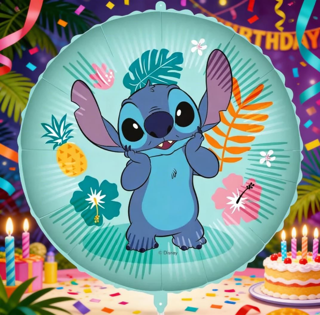 Apportez une touche magique à la fête de votre enfant avec ce ballon alu Stitch Hawaï officiel Disney. Avec son grand format de 46 cm, il est parfait pour décorer une salle, un photobooth ou une table d’anniversaire sur le thème Lilo & Stitch. Idéal pour compléter une décoration Stitch complète avec assiettes, gobelets et serviettes assortis.